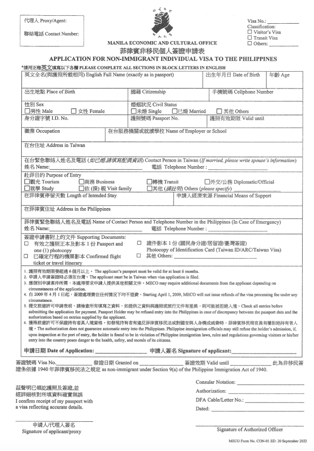 菲律賓紙本簽證表格填寫成功後,就可以準備其他申請資料準備開始申請菲律賓紙本簽證: